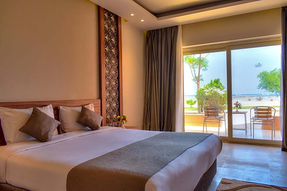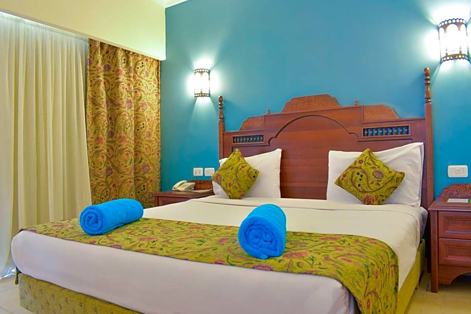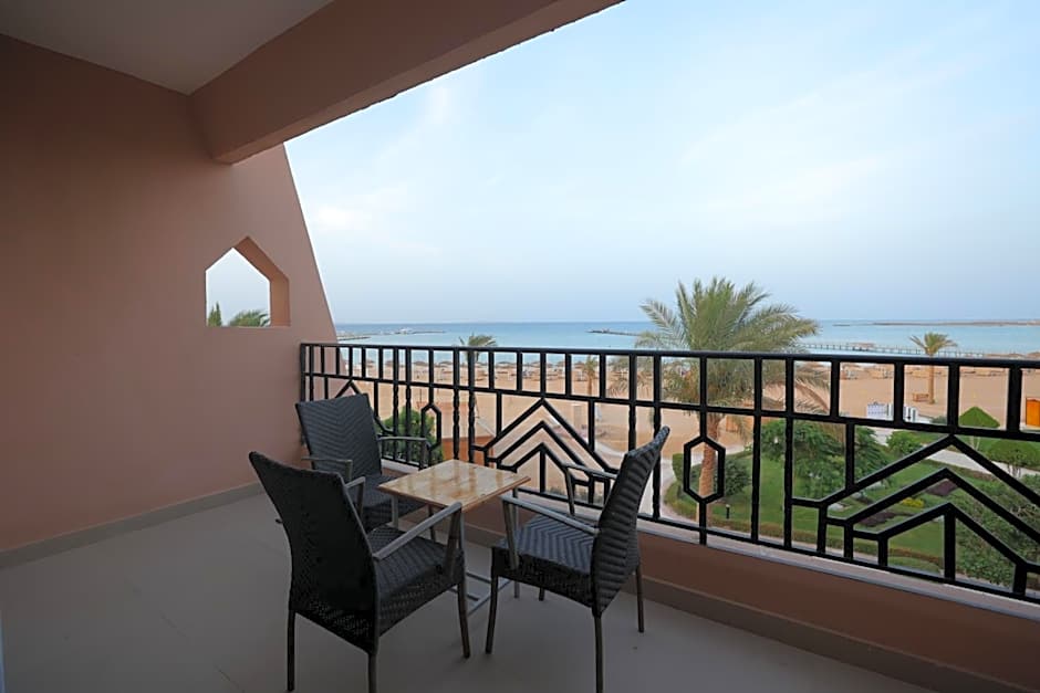 The spacious twin/double room features air conditioning, a mini-bar, a balcony with pool views as well as a private bathroom boasting a bath.